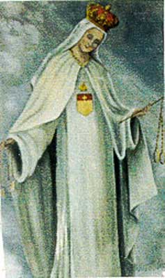 The Blessed Virgin appeared to Saint Peter, to his confessor, Raymund of Pennafort, and to the king, and through these three men established a work of the redemption of captives. She desired the establishment of the Mercedarian religious order. (derives from the Spanish word for mercy - merced) Its members would seek to free Christian captives and offer themselves, if necessary, as an exchange. The complete name of this order is: Order of the Blessed Virgin Mary for the Ransom of Captives (OdeM). |